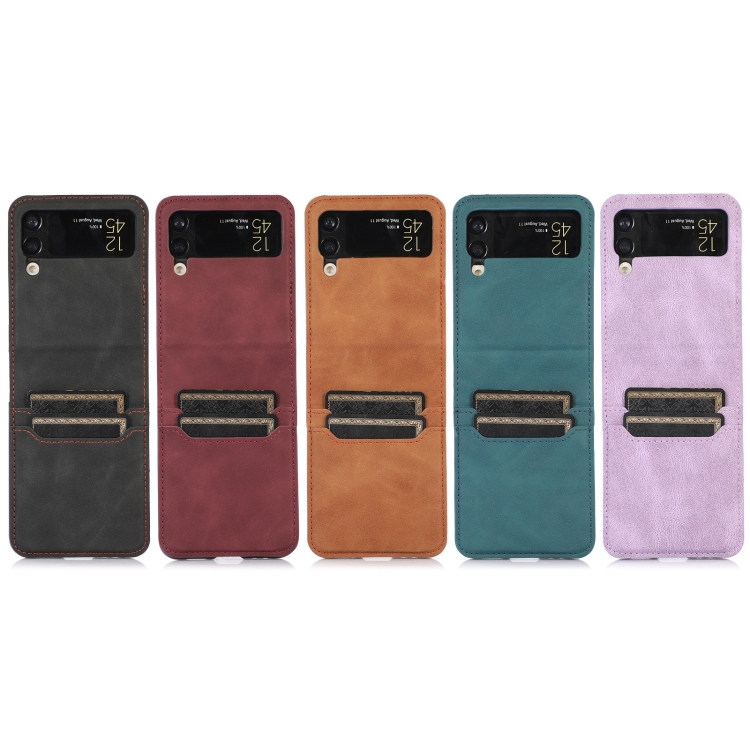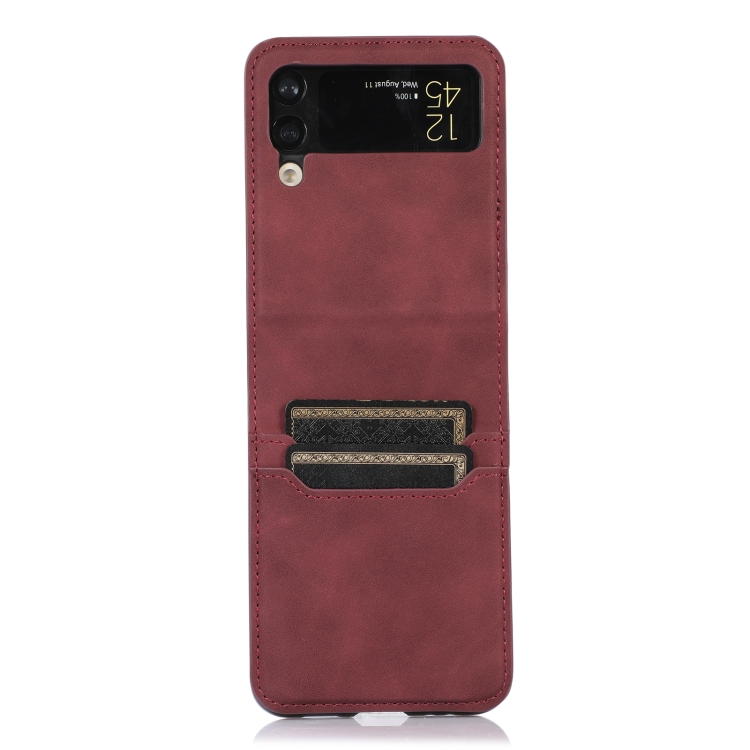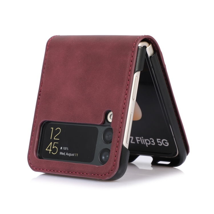Funda de Cuero para Teléfono Samsung Galaxy Z Flip3 5G Ranura para Tarjeta (Rojo)