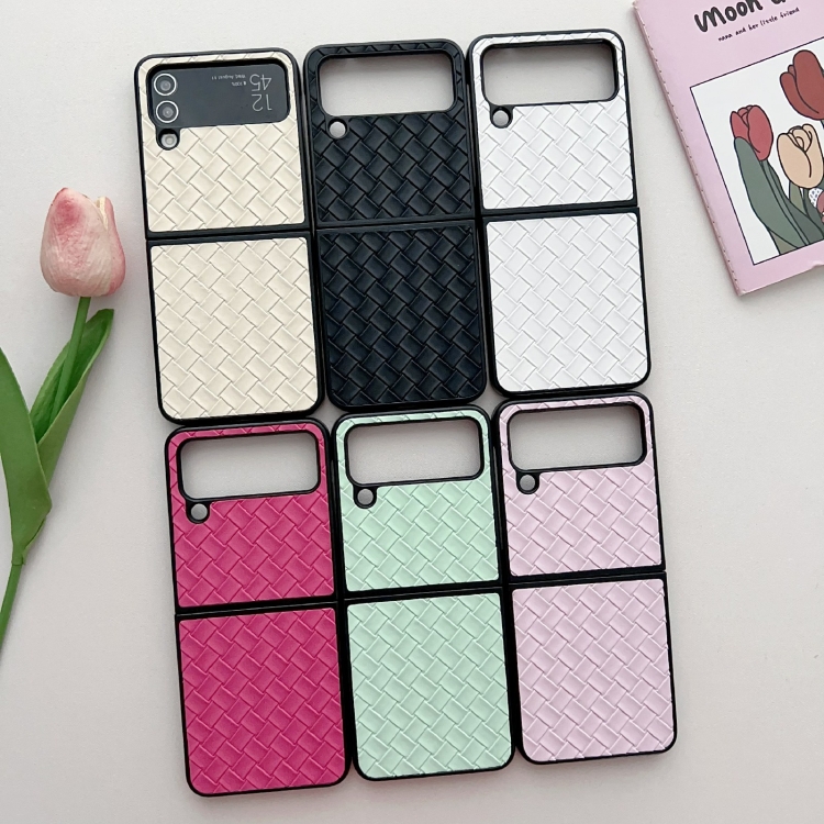 Funda plegable para teléfono Samsung Galaxy Z Flip3 de PU con textura tejida (Rojo Rosa)