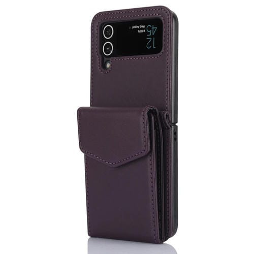 Estuche plegable para teléfono Samsung Galaxy Z Flip3 con ranuras para tarjetas y cordón largo (Púrpura Oscuro)