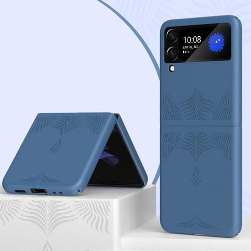 Funda Protectora Samsung Galaxy Z Flip4 5G Textura Cuero En Relieve (Azul Antiguo)