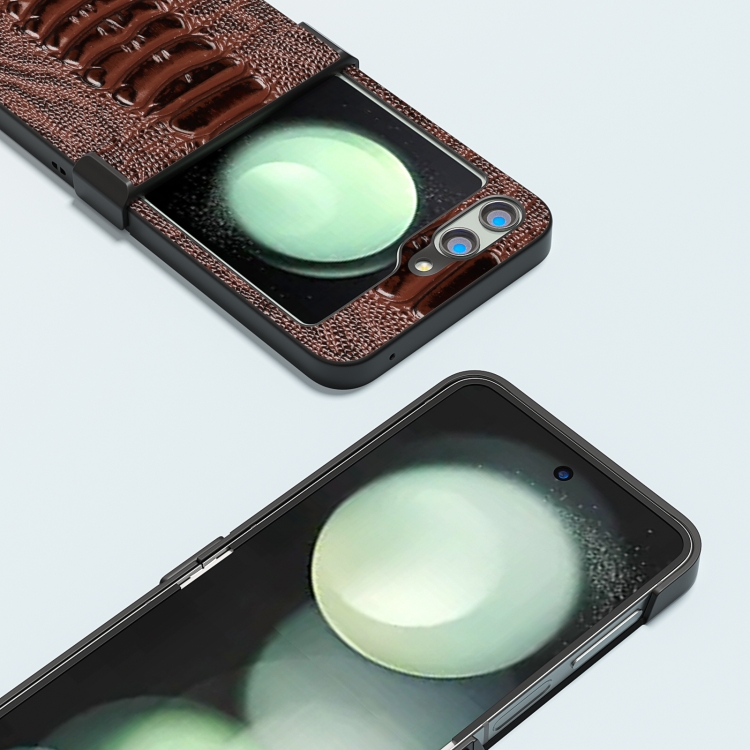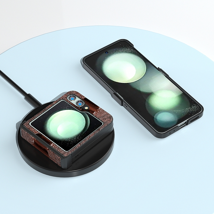 Funda para Teléfono Samsung Galaxy Z Flip5 Abeel Hinge Serie Weilai de Cuero Genuino (Café)