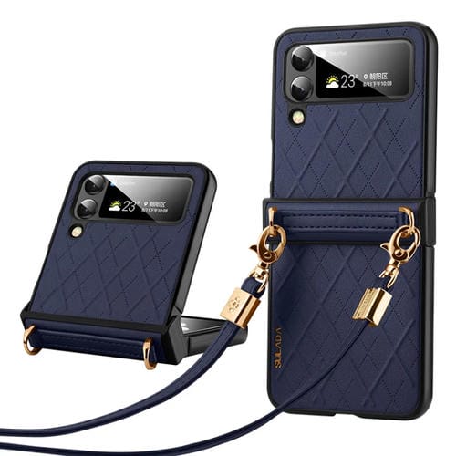Funda para Teléfono Plegable Samsung Galaxy Z Flip5 Sulada con Textura Rómbica (Azul)