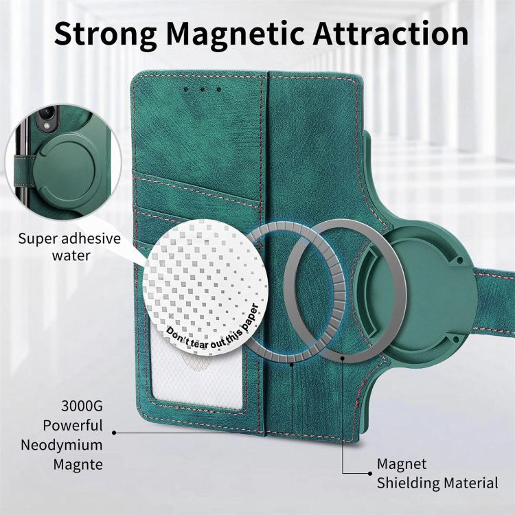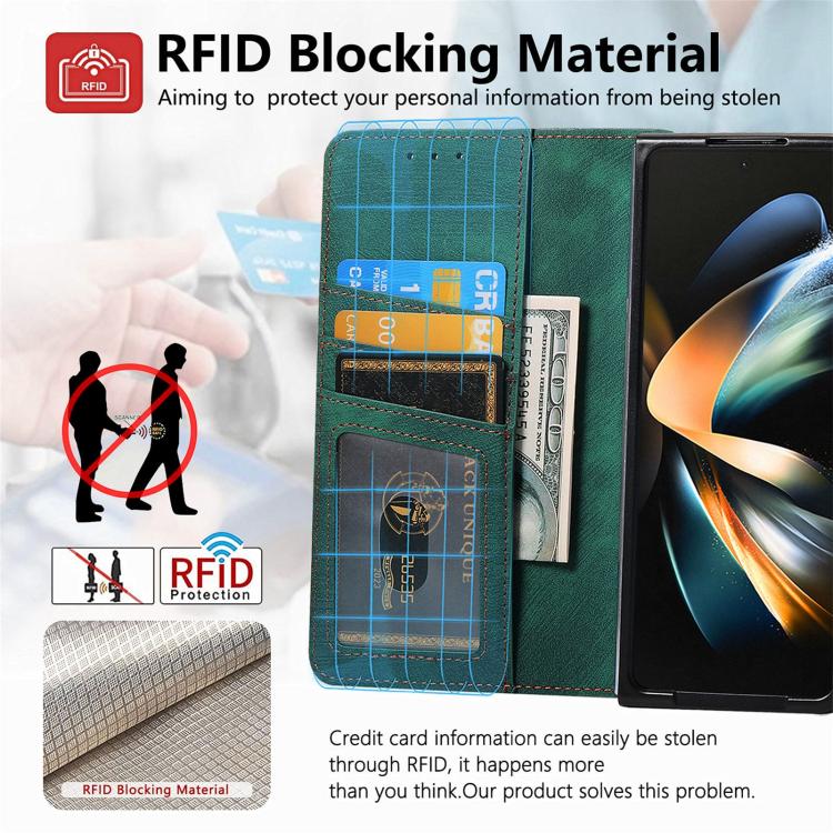 Funda para Samsung Galaxy Z Fold4 Retro Magsafe Cuero con Billetera y Cremallera Magnética (Verde)
