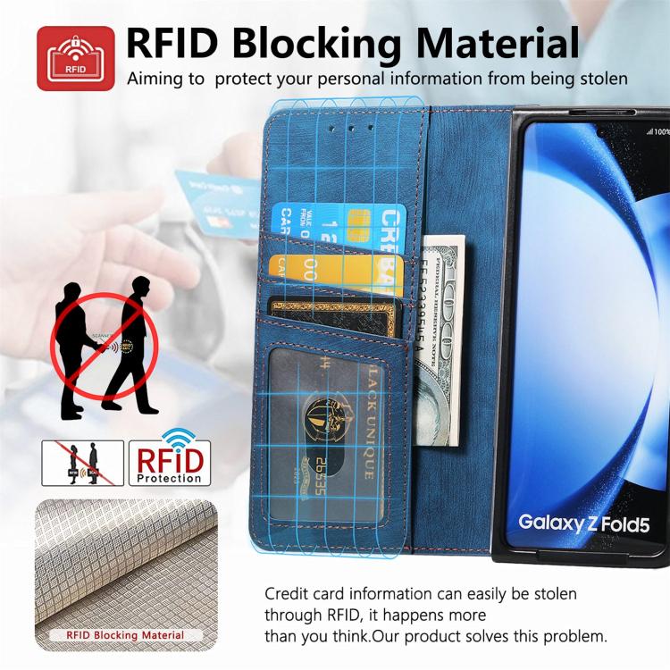 Funda para Samsung Galaxy Z Fold5 5G de Cuero con Billetera y Cremallera Magnética (Azul)