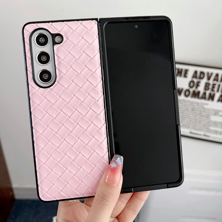 Funda para Teléfono Plegable Samsung Galaxy Z Fold5 Pu Textura Tejida (Rosa)
