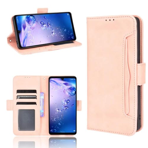 Funda de Cuero para Sharp Aquos Cero6 Piel de Becerro con Soporte y Ranuras para Tarjetas (Rosa)