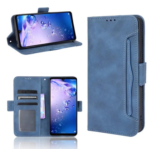 Funda de Cuero para Sharp Aquos Cero6 con Soporte, Ranuras para Tarjetas y Marco de Fotos (Azul)