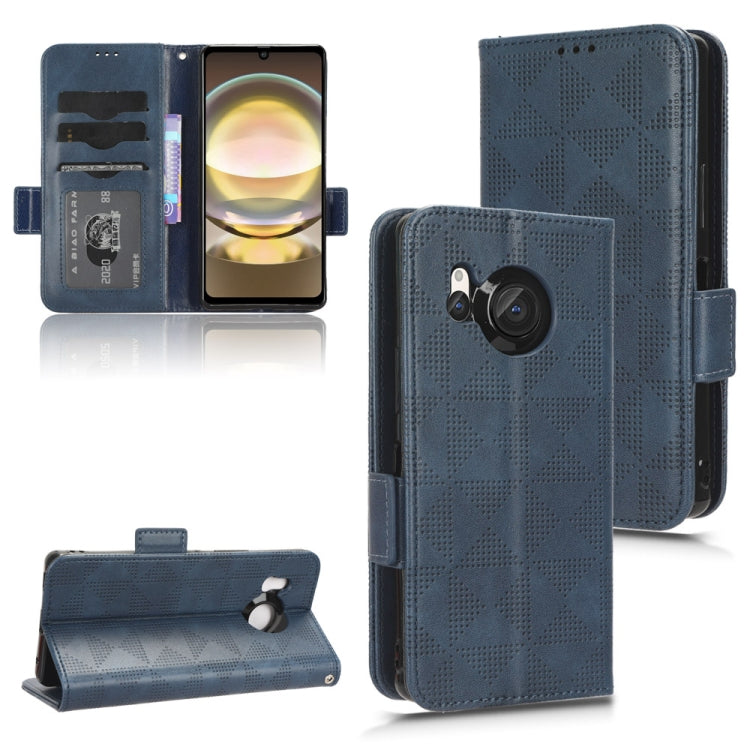 Funda de Cuero para Sharp Aquos R8 con Patrón Triángulo Simétrico (Azul)