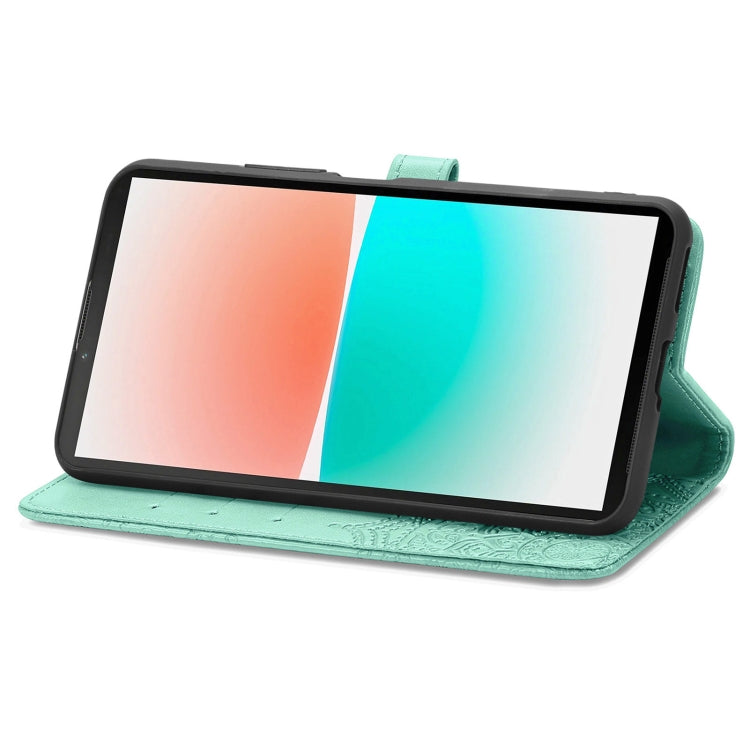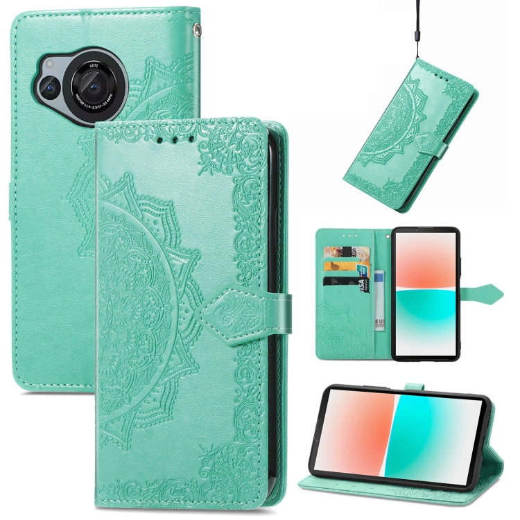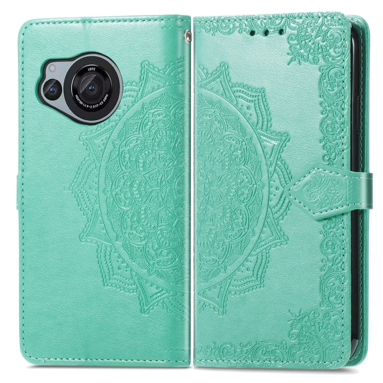 Funda de Cuero para Sharp Aquos R8 Mandala Flower en Relieve para Teléfono (Verde)