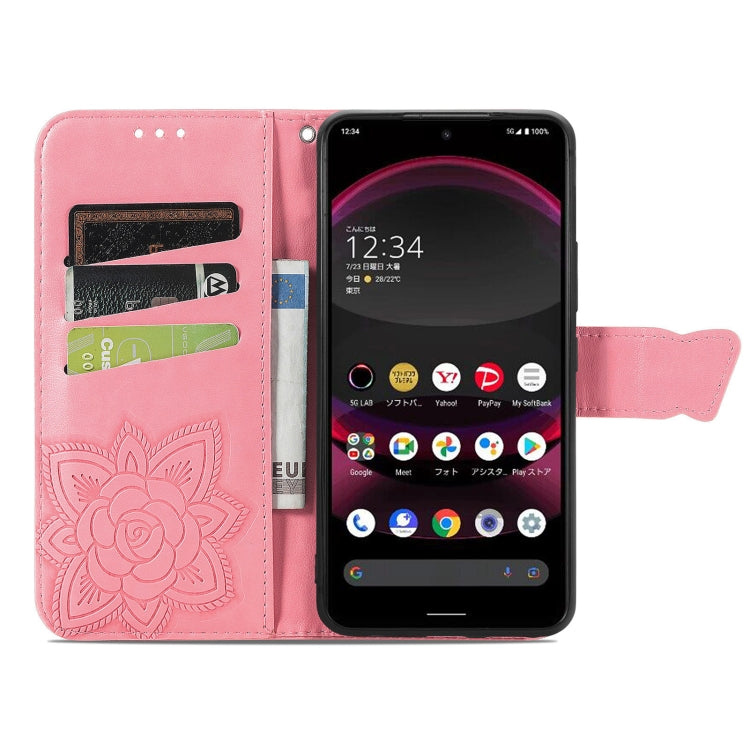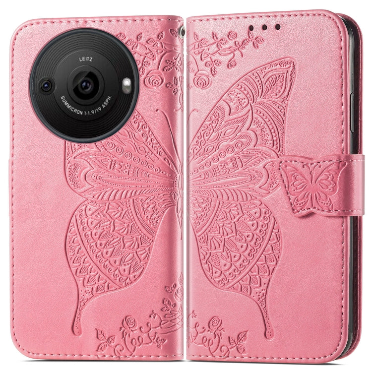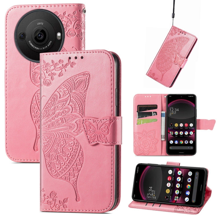 Estuche para Sharp Aquos R8 Pro Butterfly Love Flower de Cuero en Relieve (Rosa)