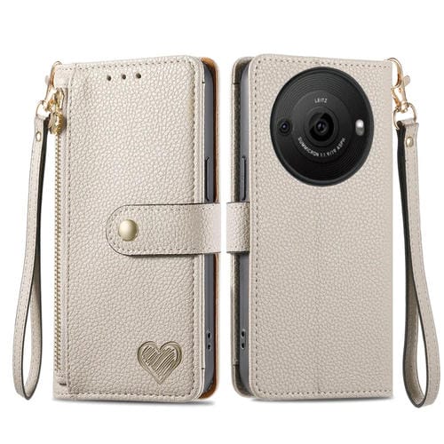 Funda de Cuero para Sharp Aquos R8 Pro con Love Zipper y Lanyard (Gris)