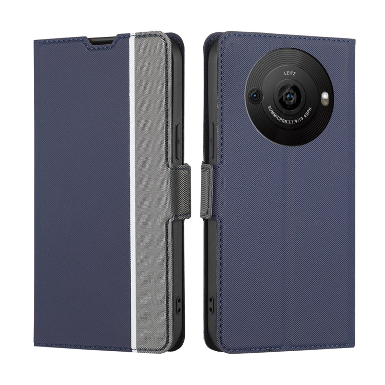 Funda de Cuero para Sharp Aquos R8 Pro Sh-51 F con Textura de Sarga y Botón Lateral (Azul)