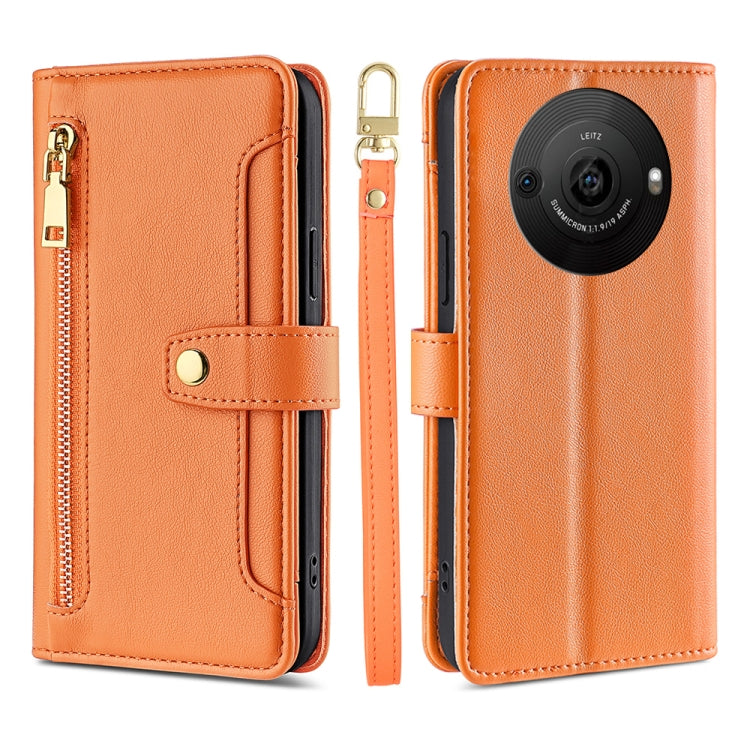 Funda de Cuero para Sharp Aquos R8 Pro Sh-51 Lite con Textura de Oveja y Cremallera Cruzada (Naranja)