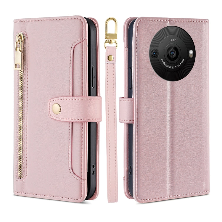 Funda de Cuero para Sharp Aquos R8 Pro Sh-51 Lite con Cremallera Cruzada y Textura de Oveja (Rosa)