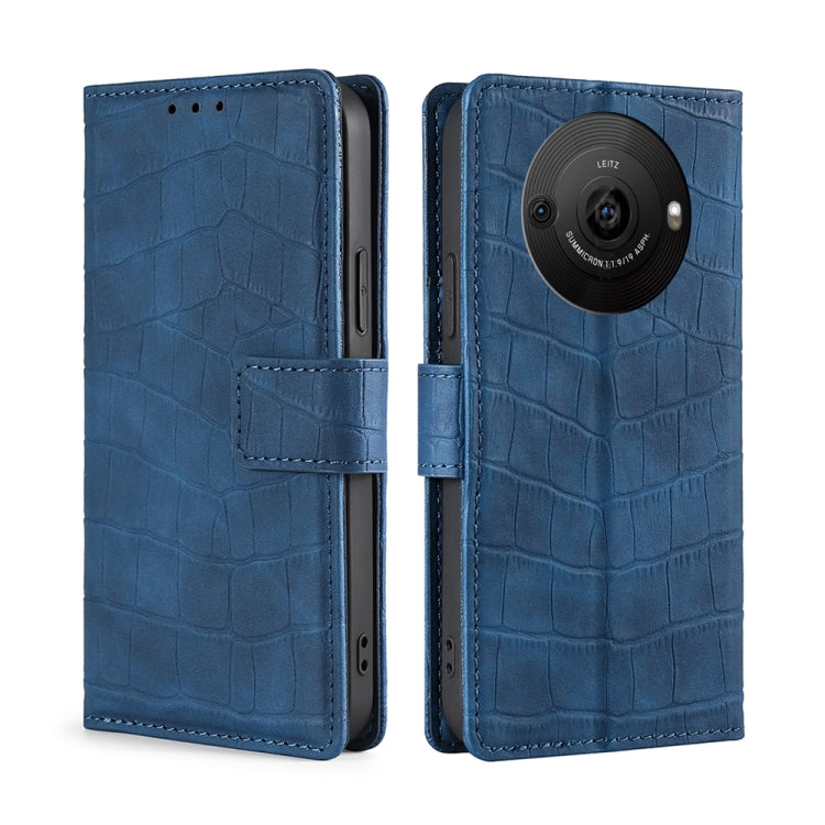 Funda de Cuero para Sharp Aquos R8 Pro Sh-51 Skin Feel Cocodrilo Cierre Magnético (Azul)
