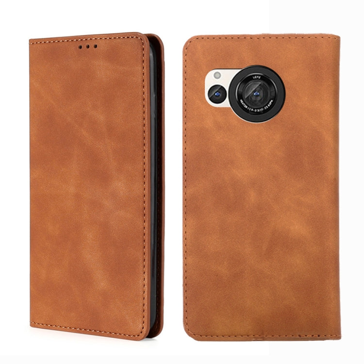Funda magnética de cuero para Sharp Aquos R8 Pro Sh-51 Skin Feel (Marrón Claro)