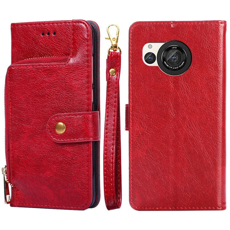 Funda de Cuero para Sharp Aquos R8 Sh-52D con Cremallera para Teléfono (Rojo)