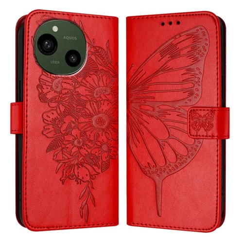 Funda de Cuero para Sharp Aquos R9 Sh-51E con Mariposa en Relieve (Rojo)