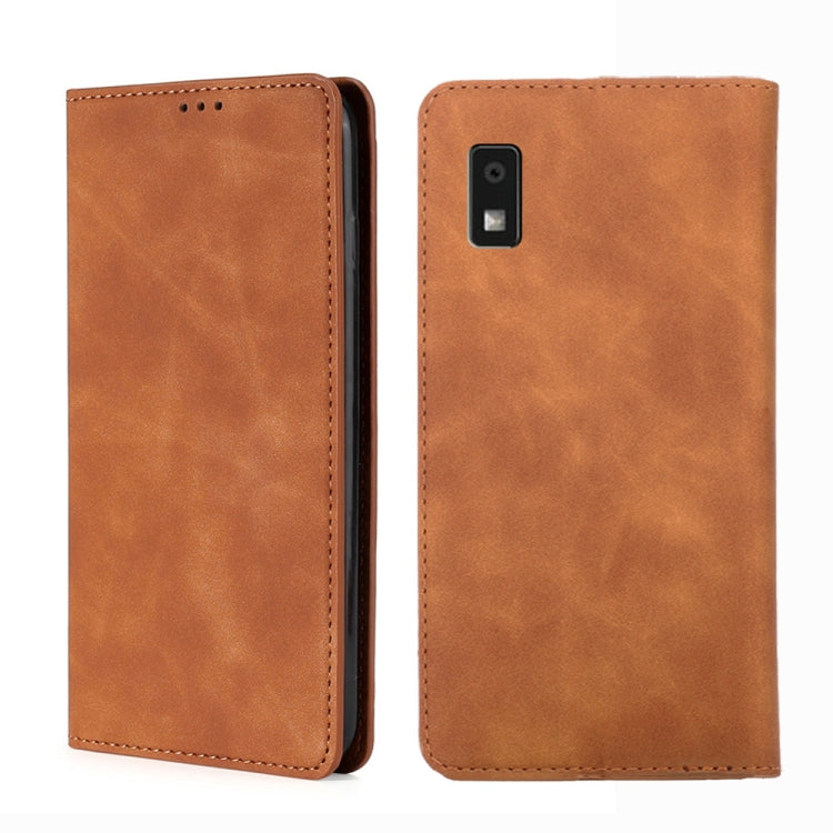 Funda Magnética de Cuero para Sharp Aquos Wish 3 Skin Feel (Marrón Claro)