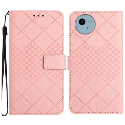 Funda para Sharp Aquos Wish 4 de Cuero con Textura de Rejilla Rómbica (Rosa)