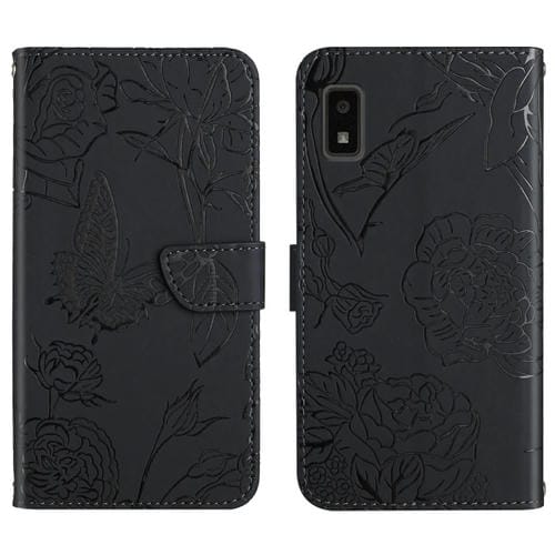 Funda de Cuero para Sharp Aquos Wish SHG06 en Relieve Peonía y Mariposa (Negro)