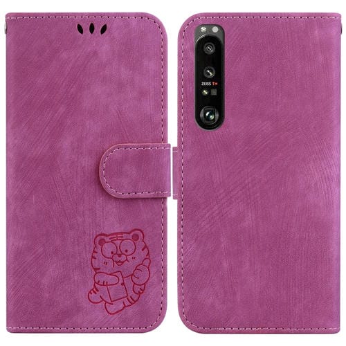 Funda para Sony Xperia 1 III de Cuero con Relieve Little Tiger (Rojo Rosa)