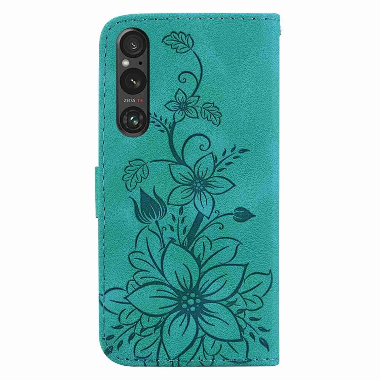 Funda de Cuero En Relieve para Sony Xperia 1 V Lily para Teléfono (Verde)