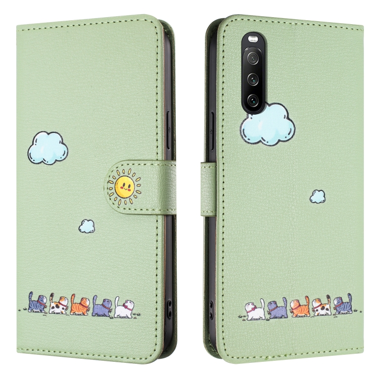Funda de Cuero para Sony Xperia 10 V con Gatos de Dibujos Animados (Verde)