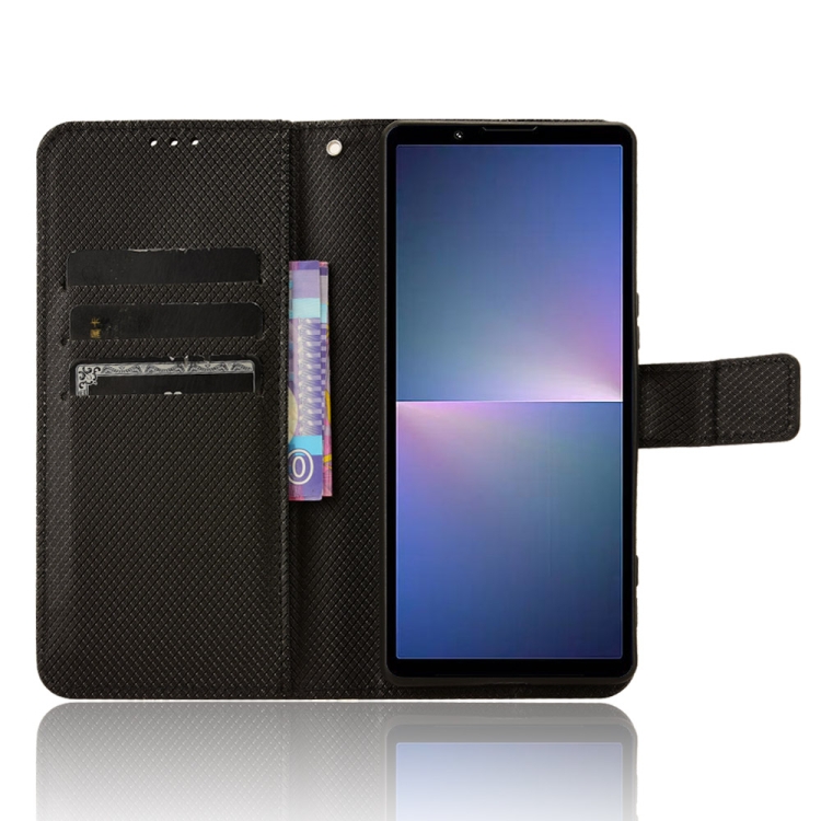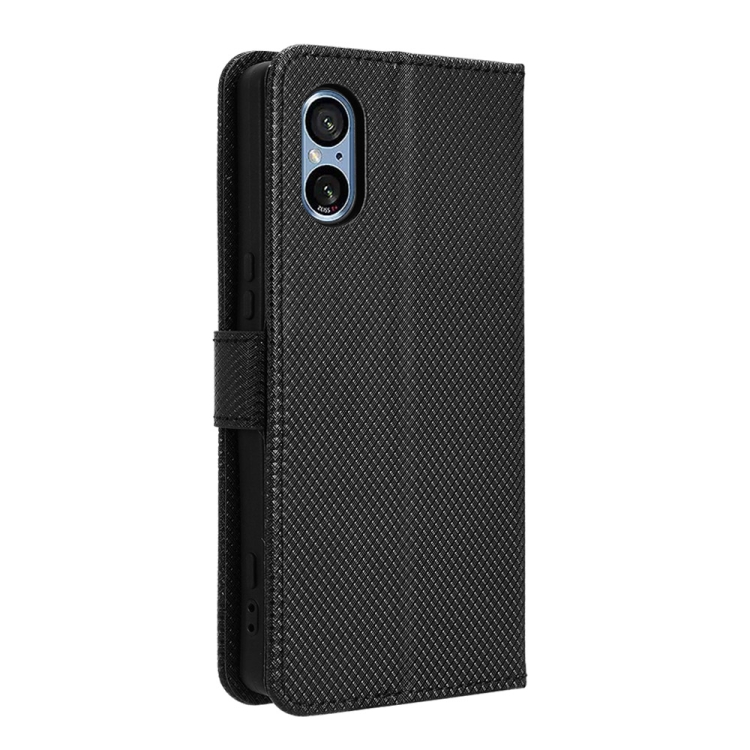 Funda de Cuero para Sony Xperia 5 V (2023) con Textura de Diamante (Negro)