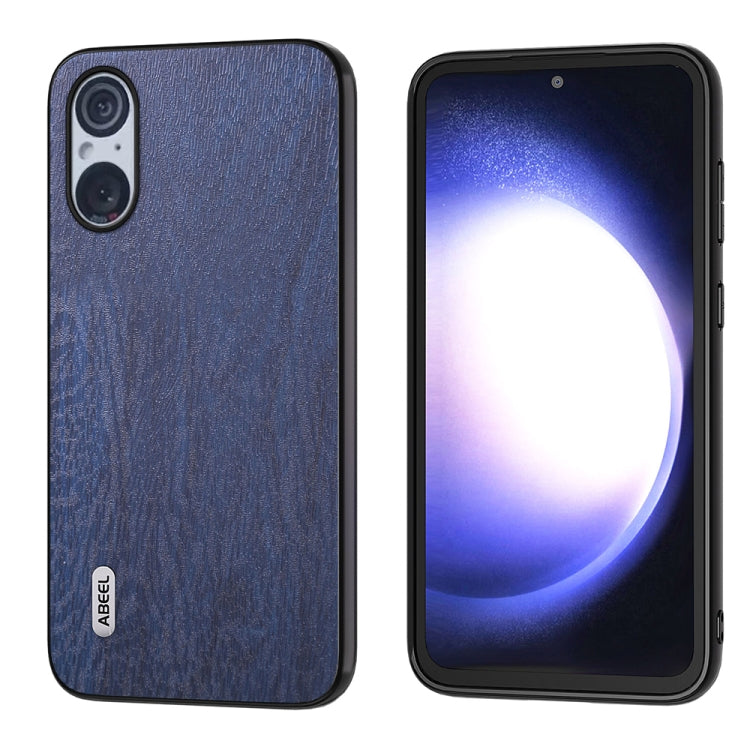 Funda para Sony Xperia 5 V Abeel PU con Textura de Madera (Azul)