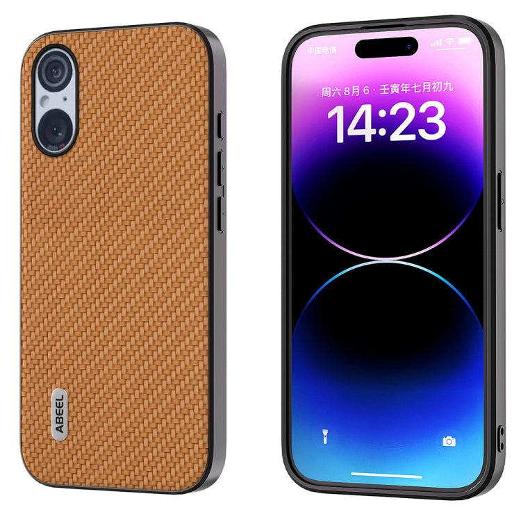 Funda Protectora Abeel para Sony Xperia 5 V con Textura de Fibra de Carbono (Marrón Claro)
