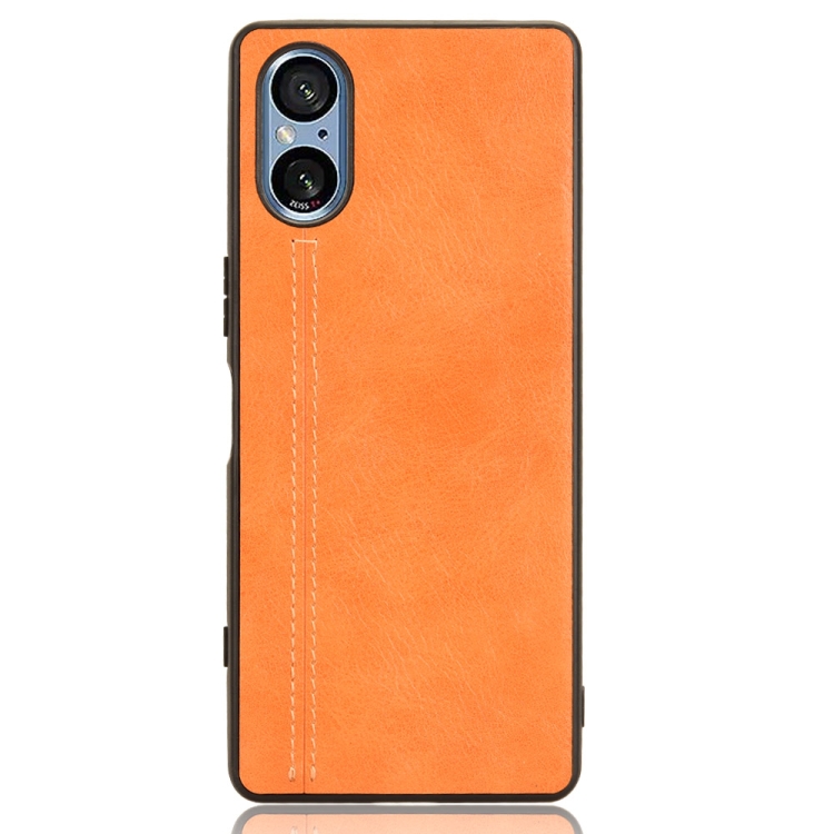Funda para Sony Xperia 5 V con Patrón de Vaca Costura PC + PU + TPU (Naranja)