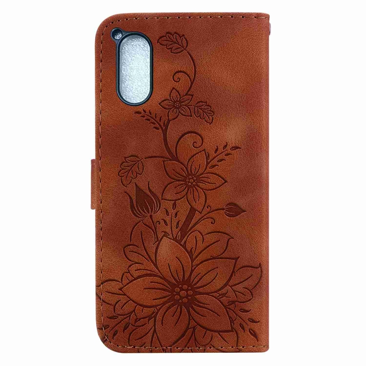 Funda de Cuero En Relieve para Sony Xperia 5 V Lily (Marrón)