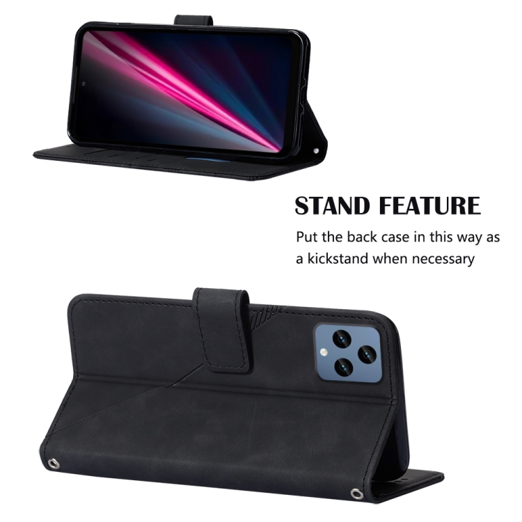 Funda de Cuero para T-Mobile Revvl 6 5G Crossbody 3D con Tapa En Relieve (Negro)