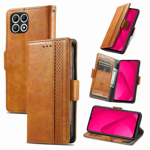 Funda de Cuero Caseneo para T-Mobile Revvl 7 5G con Hebilla Magnética Dual (Caqui)