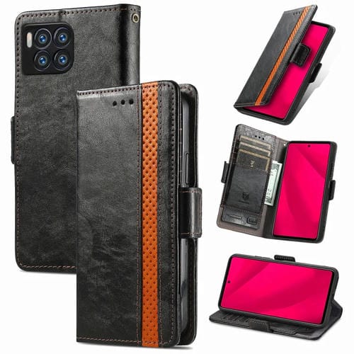 Funda de Cuero Caseneo para T-Mobile Revvl 7 Pro 5G con Hebilla Magnética Dual (Negro)