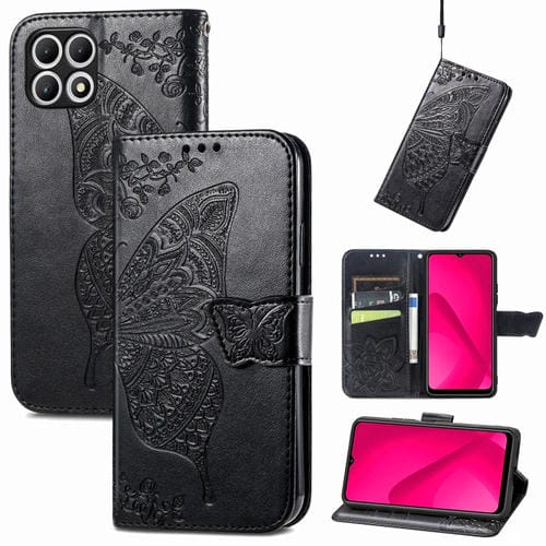 Funda para T-Mobile T Phone 2 Pro 5G de Cuero con Relieve Flor y Mariposa (Negro)