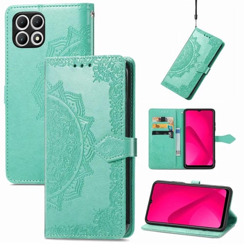 Funda para T-Mobile T Phone 2 Pro 5G Cuero con Relieve Flor de Mandala (Verde)
