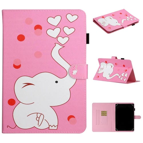 - 1x Funda para Tablet PC Universal 10 Pulgadas Cuero PU con Soporte y Ranura para Tarjeta (Loving Elephant)