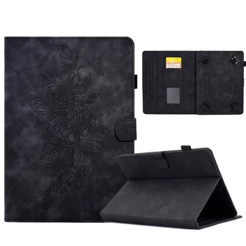 Estuche para Tableta de Cuero con Relieve Mariposa Peonía para Tabletas de 10 Pulgadas (Negro)