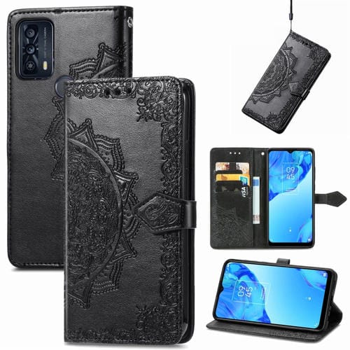 Funda Horizontal Flip para TCL 20B Mandala Flower Protección (Negro)