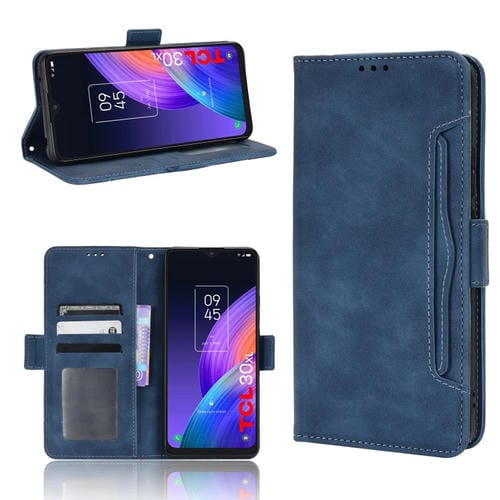 Funda de Cuero para TCL 30 XL Skin Feel con Ranuras para Tarjetas (Azul)