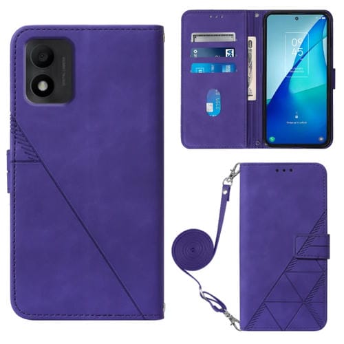 Funda de Cuero para TCL 303 Crossbody con Tapa en Relieve 3D (Púrpura)