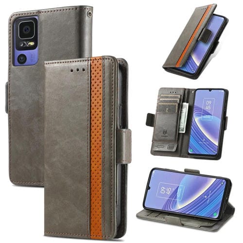 Pour TCL 40 SE CaseNeo Splicing Étui de téléphone en cuir à double boucle magnétique (gris)