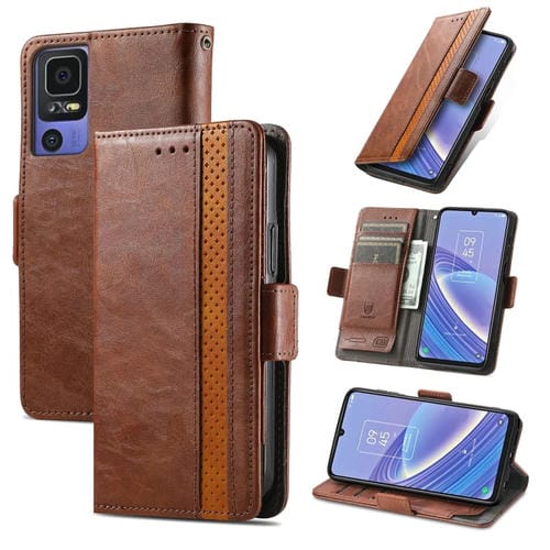 Pour TCL 40 SE CaseNeo Splicing Étui de téléphone en cuir à double boucle magnétique (marron)