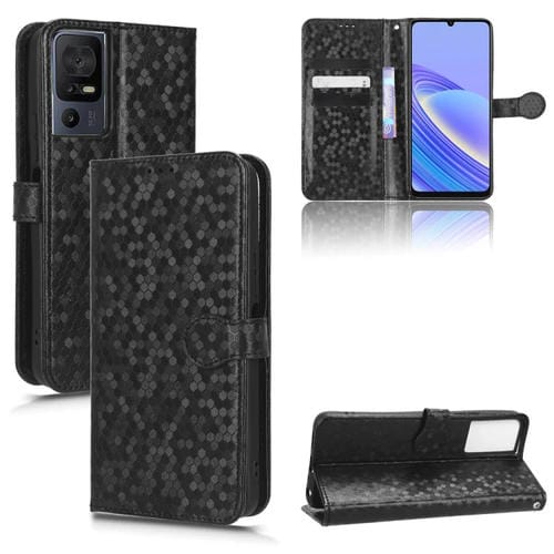 Funda de Cuero para TCL 40 Se con Textura de Punto de Panal (Negro)