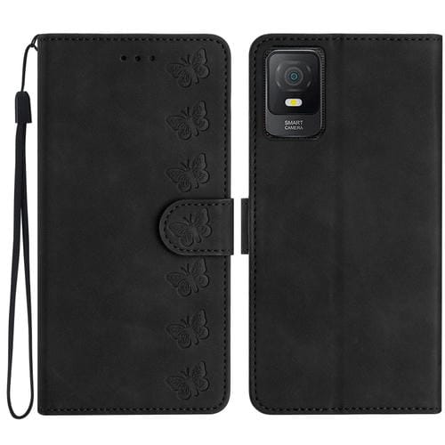 Funda de Cuero para TCL 40 Se Seven Butterflies con Relieve (Negro)