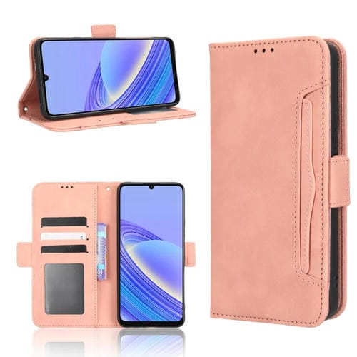 Funda de Cuero para TCL 40 Se Skin Feel con Textura Becerro y Ranuras para Tarjetas (Rosa)