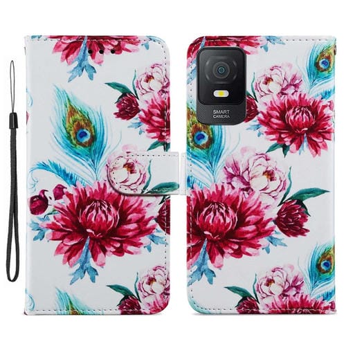 Funda de Cuero para TCL 403 con Tapa Horizontal y Patrón Pintado (Flor de Pavo Real)