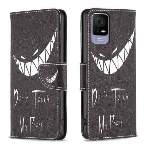 Funda de Cuero para TCL 405 con Patrón de Dibujo de Colores (Sonrisa)